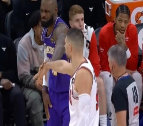 友好击掌!詹姆斯上篮被武切维奇拉下前者不适一直扭肩膀